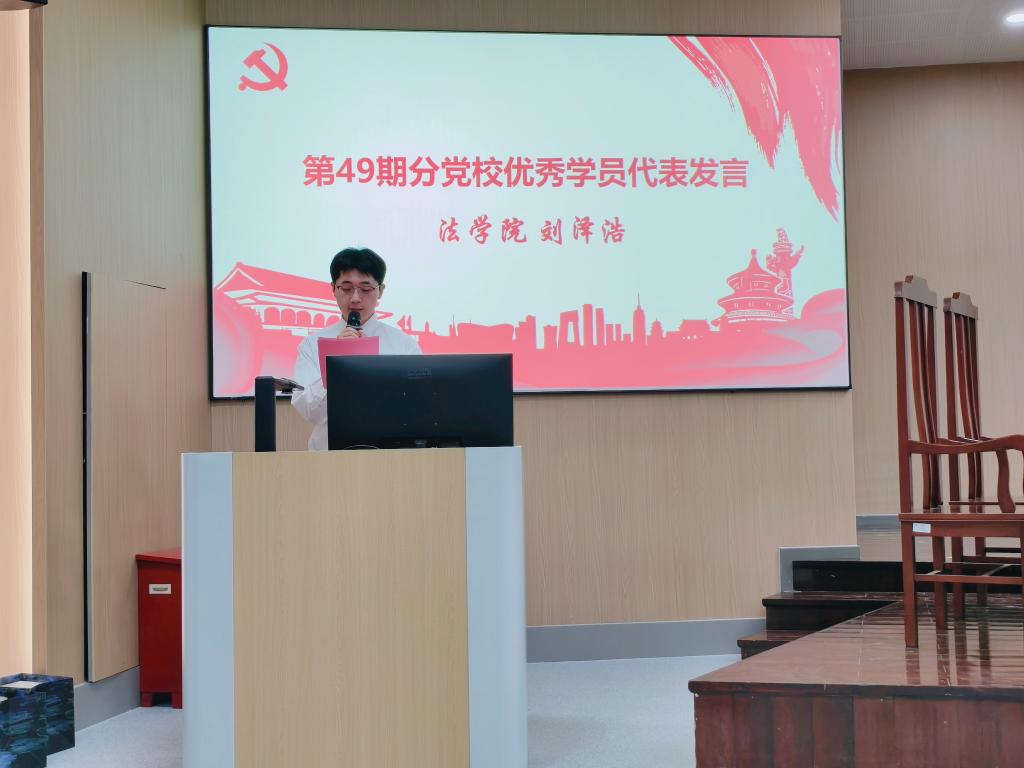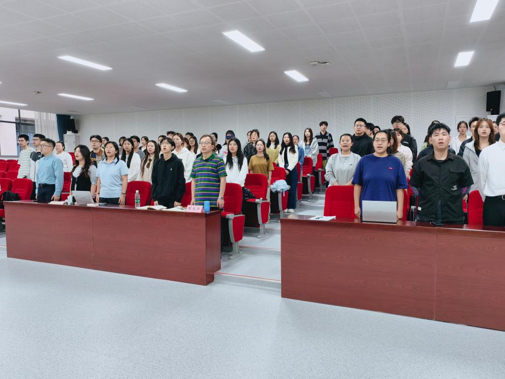 开班仪式在《国歌》旋律中拉开帷幕,激荡着现场每一位学员的爱国情怀与入党初心。党建辅导员缪晶晶老师进行开班动员。她介绍本次培训班学习安排与规范要求,指出党校培养用党的科学理论武装青年、用党的初心使命感召青年,希望同学们做到成为政治进步和全面发展相统一、先锋意识和人民情怀相统一、理论积累和实践历练相统一的先锋模范,以良好的精神面貌与进取的奋斗姿态勇担时代责任和历史使命。第49期优秀学员代表、法学院2022级刘泽浩同学发言。他结合自身学习经历,对学生党员这一身份深入理解与阐述。他认为学生党员是连接党组织与广大同学的桥梁和纽带,要在专业学习上刻苦钻研、争当表率,在品德修养上严于律己、引领风尚,时刻以更高标准检视自己,以实际行动展现新时代青年的价值与风采。随后,举行党旗交接仪式。第49期学员代表刘泽浩同学将党旗授予第50期学员代表周彤烨同学,激励新一期学员继续传承党的优良传统责任精神。全体学员进行宣誓仪式,誓言铿锵,掷地有声,充分展现学员们积极向党组织靠拢、矢志奋斗的坚定决心。
