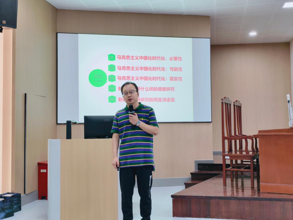 马克思主义学院彭长华老师以《新时代新青年新启航:马中化视角谈调查研究的方法策略》为题进行专题授课。他从毛泽东“没有调查就没有发言权”到习近平“深实细准效”五字诀,介绍马克思主义中国化视角下调查研究方法策略,强调新时代调研要坚持实事求是、群众路线、问题导向,以理论武装、作风转变、制度保障走深走实。彭长华老师寄语全体参训学员要在生活、学习中强化调查研究本领,为投身全面建设社会主义现代化强国担当青春使命,贡献青春力量。