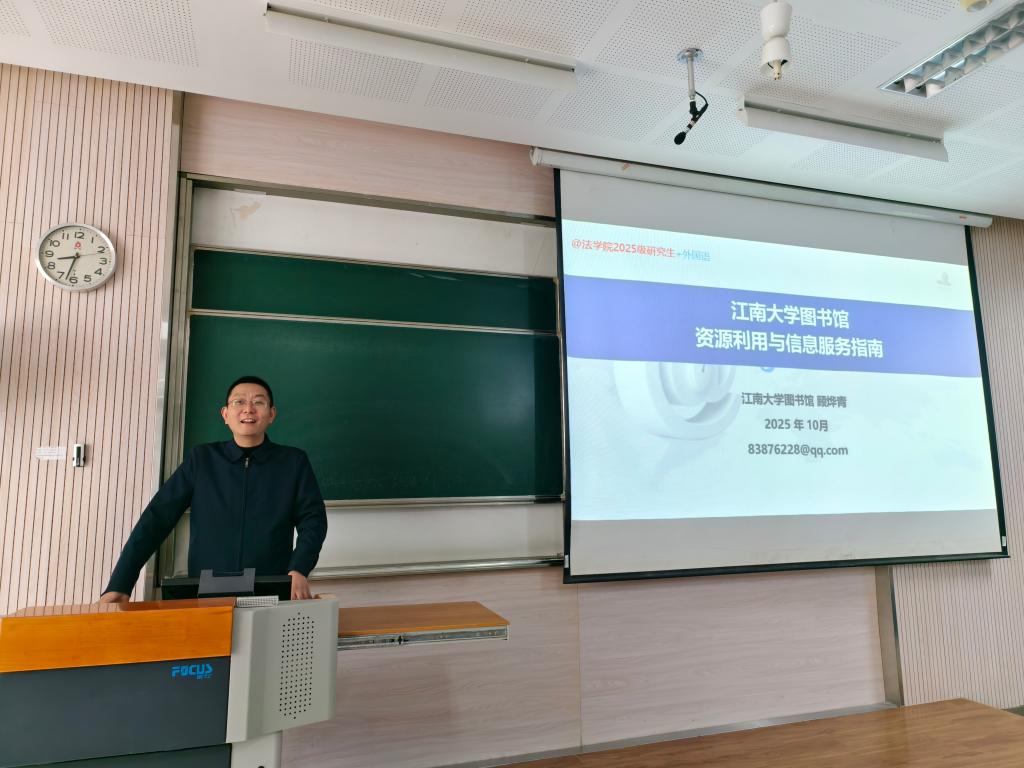 为帮助2025级研究生新生尽快熟悉图书馆资源与服务,提升信息素养与科研能力,10月22日上午,法学院在2C203教室举办了题为《图书馆资源利用与信息服务指南》的专题讲座。本次讲座由图书馆副馆长顾烨青主讲,面向法学院2025级研究生,旨在为研究生阶段的学术研究与论文写作打下坚实基础。