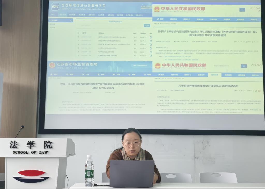 10月24日下午,“社会服务领域标准编制辅导”专题讲座于江南大学法学院A445会议室顺利举行。本次讲座特邀无锡市检验检测认证研究院质量与标准化部副部长、高级工程师郑菲担任主讲,旨在系统提升我院教师在社会服务领域的标准化理论素养与实践能力。江南大学法学院副院长李俏教授,公益慈善与社会工作研究中心李娟副教授、王芳副教授、曹菲副教授、杨文丽副教授等教师代表,以及南京诗格科技有限公司代表王朴莉共同参与学习交流。讲座由李娟副教授主持。