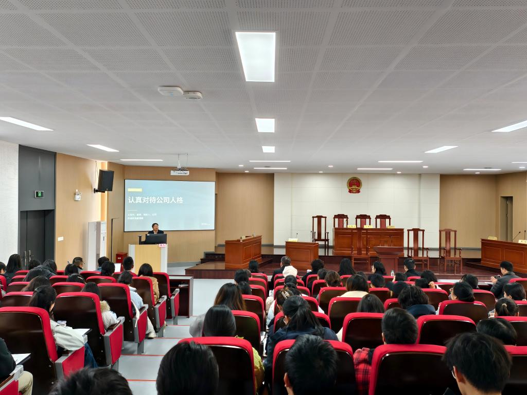 在专题研学交流环节,无锡中级人民法院党组副书记、副院长,二级高级法官蒋飞以“审判视野下新修订公司法若干问题研究”为题,带来了一场精彩的学术讲座。讲座围绕最新修订的《公司法》适用公司独立人格的应然与实然等核心命题,结合国内外前沿理论动态进行剖析。授课结束后,师生们就审判实践中遇到的股权转让纠纷、诉讼实务中的操作等疑难复杂问题进行互动交流。