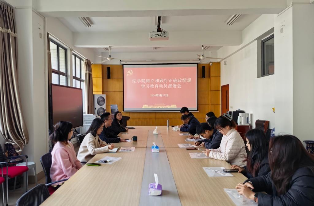 3月12日下午,法学院召开党支部书记会议,深入学习贯彻习近平总书记关于树立和践行正确政绩观的重要论述,并就学院相关工作启动部署。法学院党委书记陆秦,党委副书记、副院长顾云艳及全体师生党支部书记出席会议。