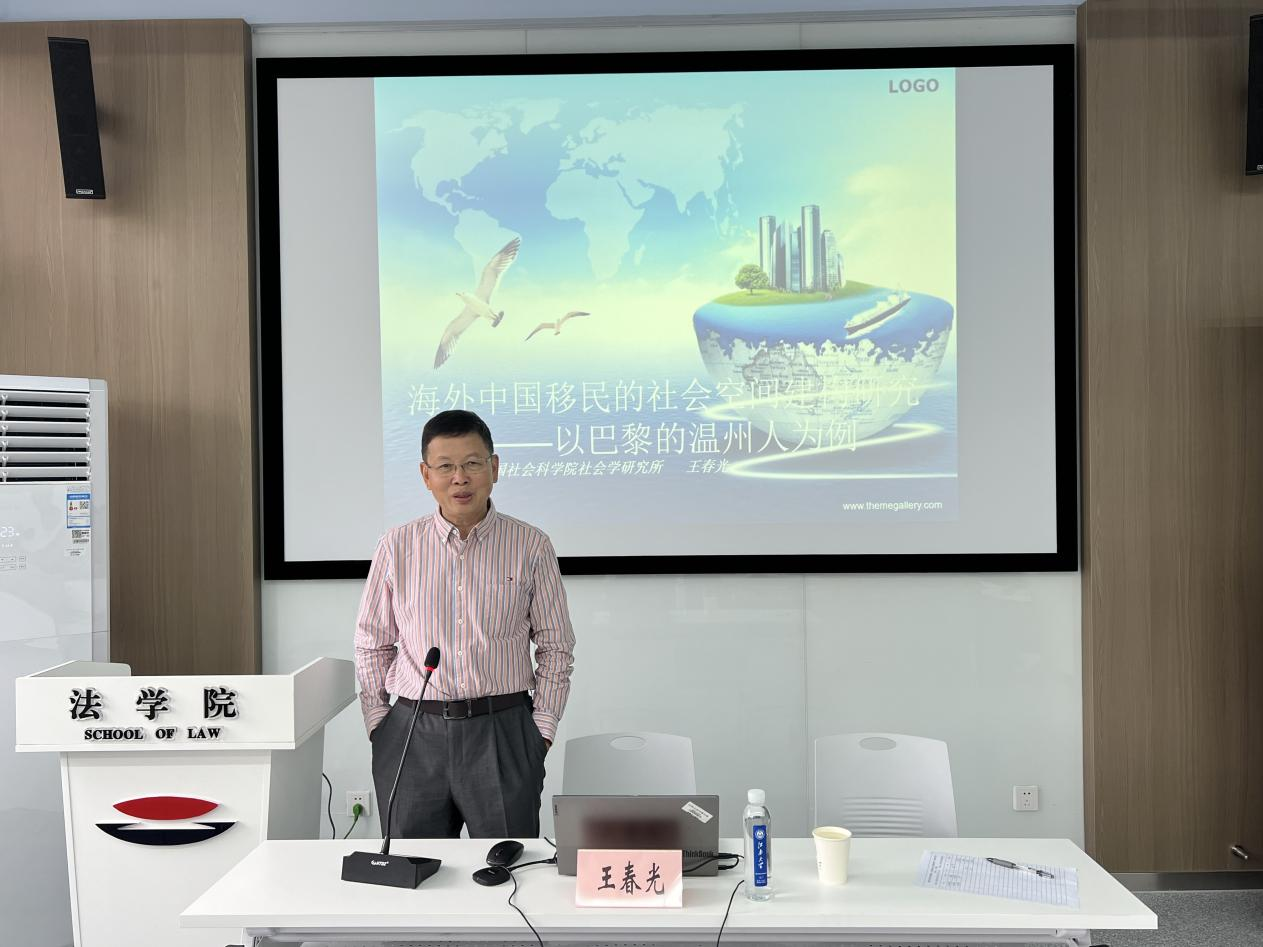 10月14日下午,江南大学法学院德法力行讲坛第五十三期在法学院A414会议室举行,特邀中国社会科学院王春光研究员作题为《海外中国移民的社会空间建构研究——以巴黎的温州人为例》专题讲座,讲座以巴黎的温州人为研究样本,为在场师生带来了一场兼具学术深度与现实关照的精彩分享。法学院副院长李俏、党委副书记、副院长胡博、社会学系教师王芳、许轶冰、章程、陈健、肖琳、法律系教师吴芳及2025级农村发展专业硕士等80余人参加,会议由法学院院长王君柏主持。