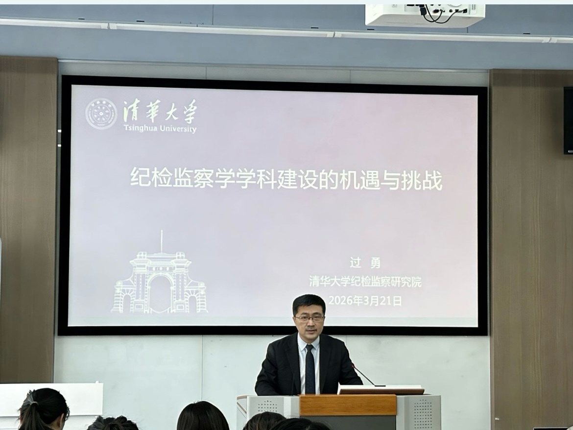 为深入推进纪检监察学学科建设,探讨新时代廉政治理与学科发展核心议题,2026年3月21日下午,江南大学法学院特邀清华大学党委副书记、公共管理学院过勇教授,于法学院A414报告厅作《纪检监察学学科建设的机遇与挑战》专题学术讲座。本次讲座由江南大学法学院副院长叶敏教授主持,学院师生及相关领域研究者共同参与。
